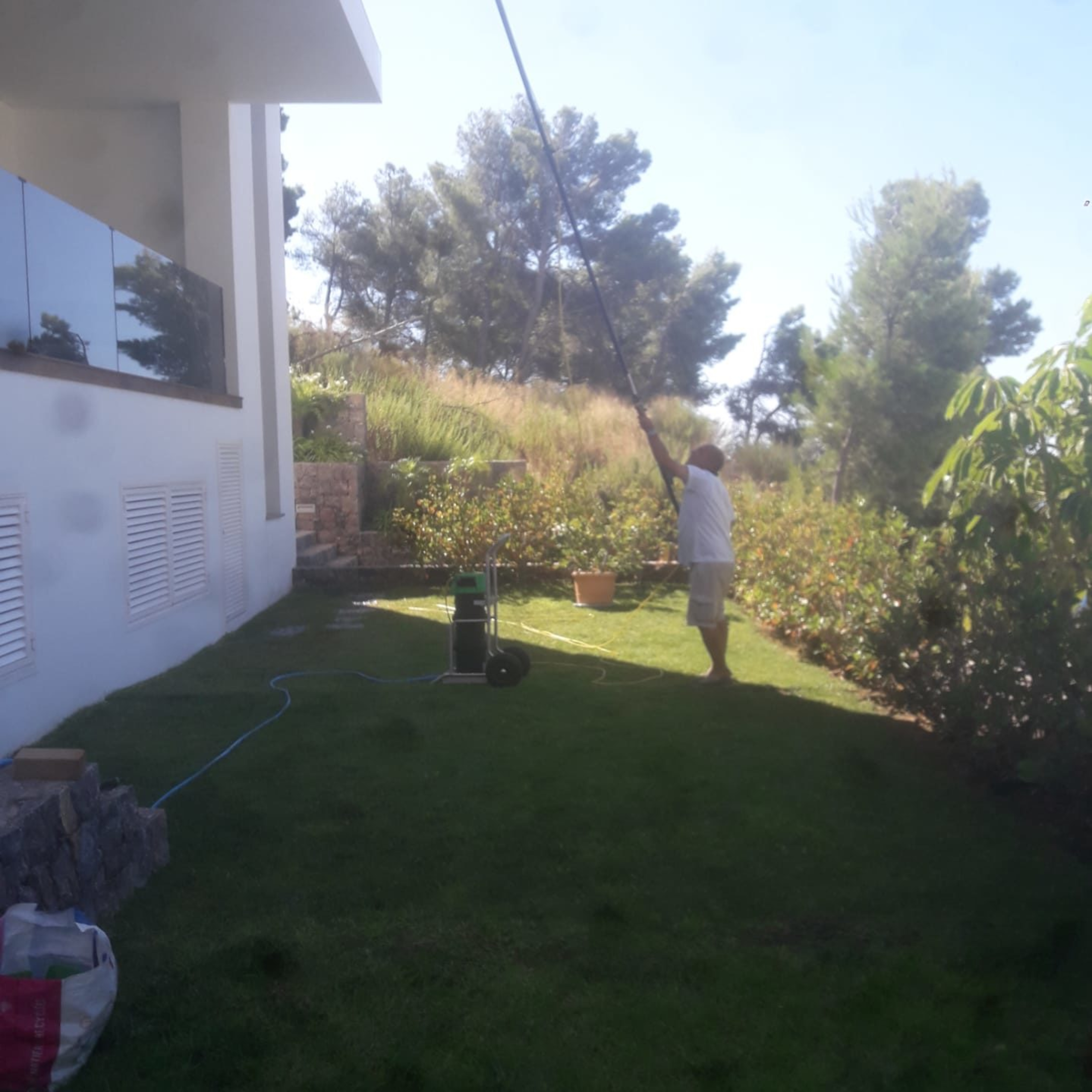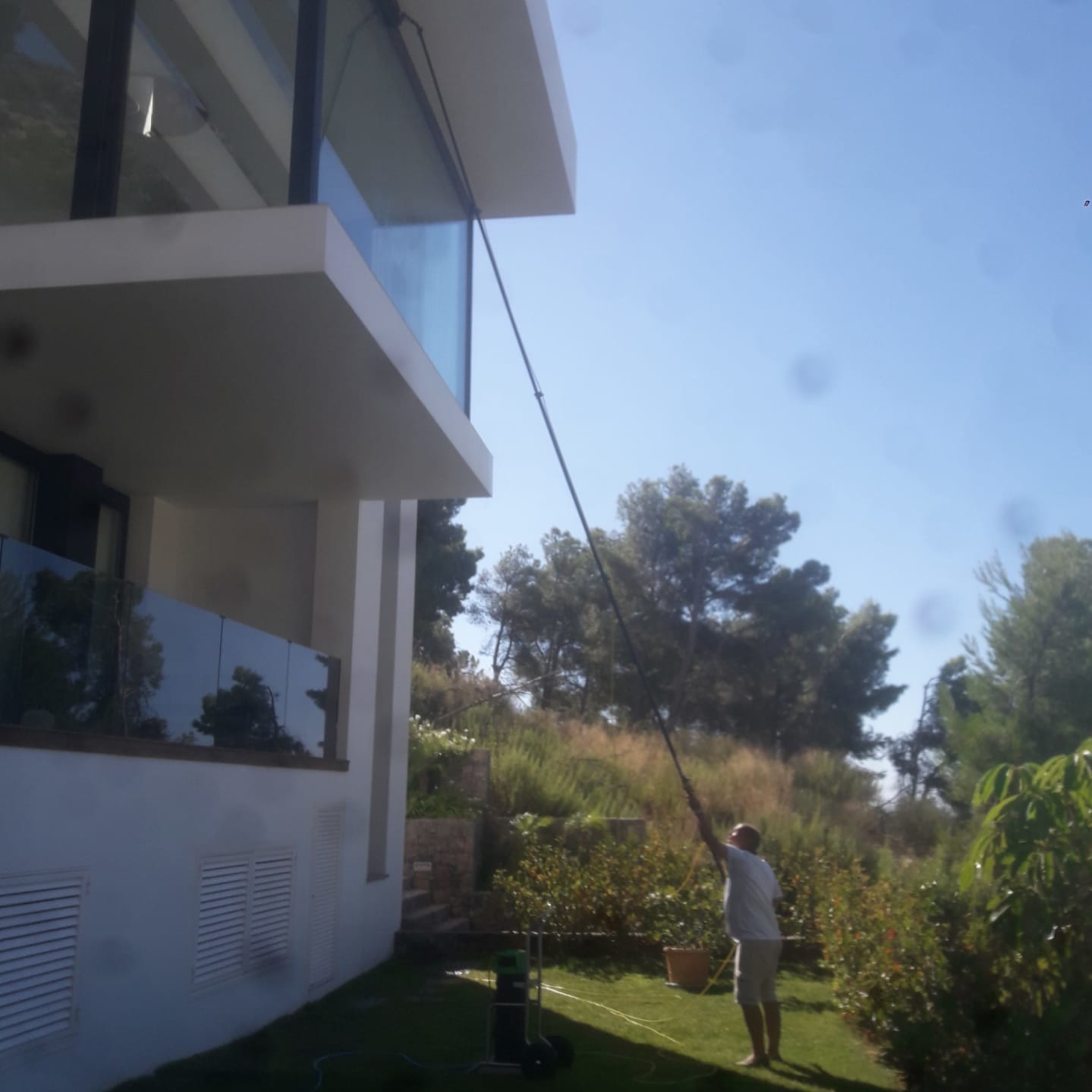 Nous pouvons offrir ce service pour des fenêtres jusqu’à 10 m de hauteur. Nous nettoyons les fenêtres avec un système d’osmose depuis le rez-de-chaussée. En filtrant l’eau, les vitres peuvent être nettoyées avec une brosse et l’eau sèche sans laisser de traces. Nous pouvons également laver les fenêtres de manière classique.